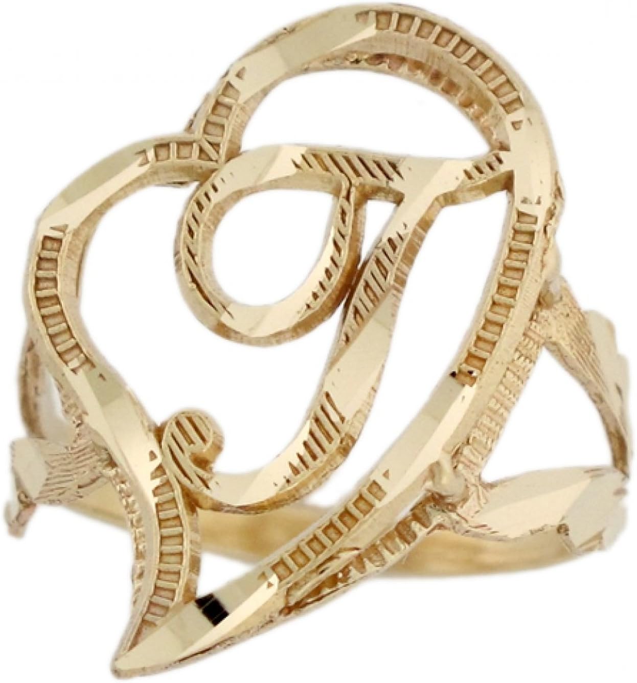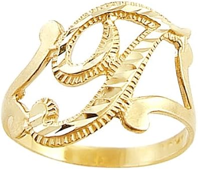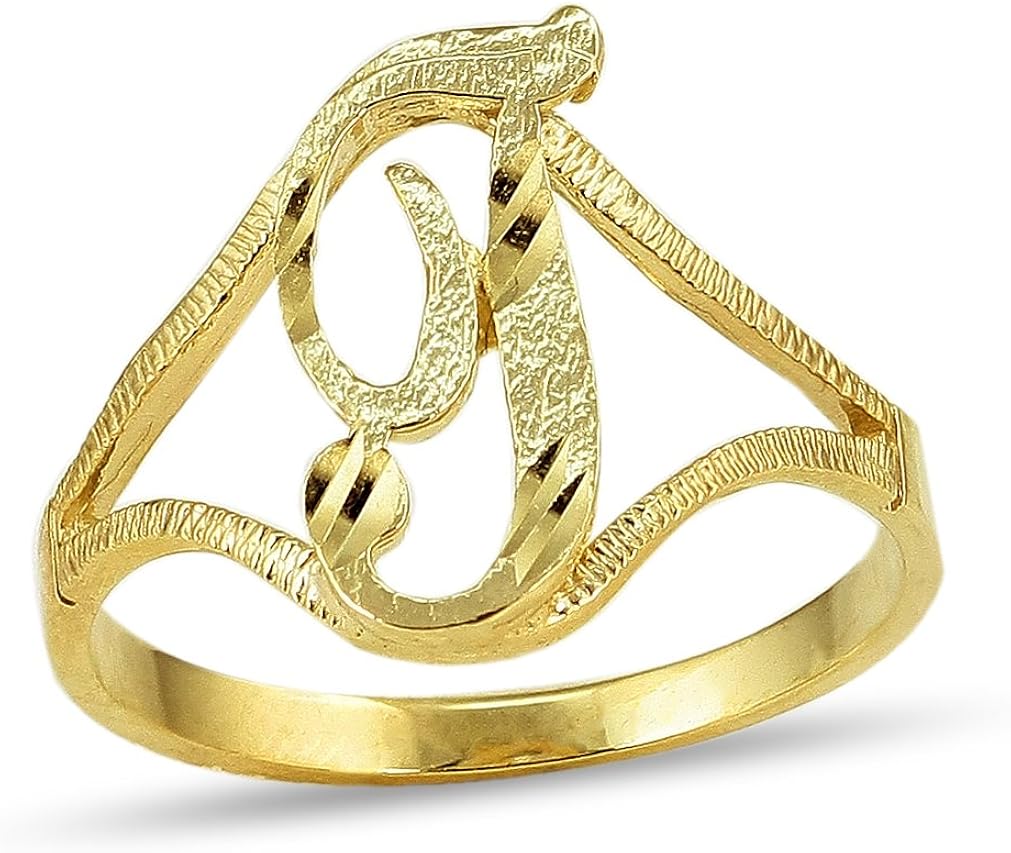 Amazon Com Letter Ring T Initial Band 14k Yellow Gold Cursive
