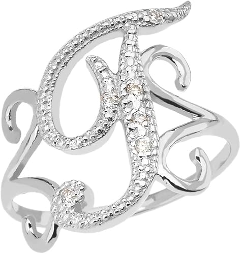 Amazon Com 14k White Gold Modern Cursive T Diamond Initial Ring