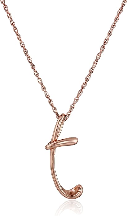 Amazon Com 14k Rose Gold Plated Sterling Silver T Cursive